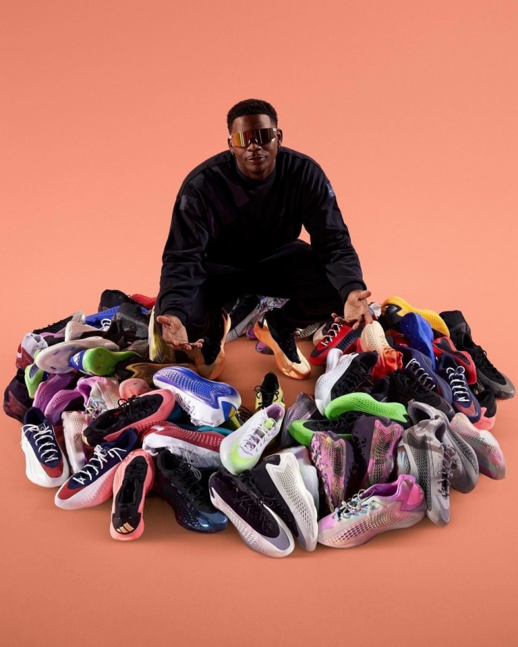 视频中,华子正要评选年度最佳球鞋,他的的好基友则一本正经的介绍起了候选的球鞋名单,结果拿出来的全是各种配色的AE 1,结果自然也就不意外了,华子的第一代签名鞋AE 1当选了年度最佳球鞋。