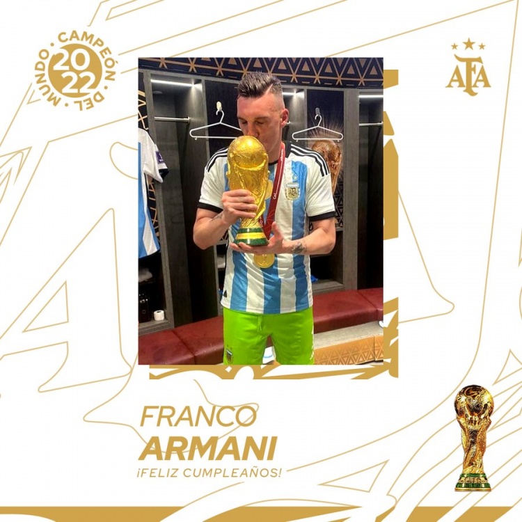 2025-10-17 00:05:17阿根廷晒海报祝贺阿尔玛尼39岁生日,生涯27冠位列阿根廷门将之首